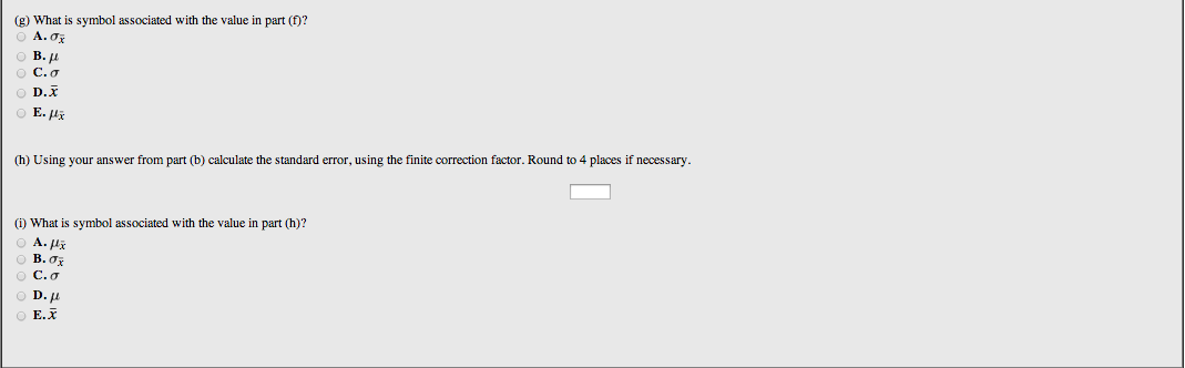 Description: A WeBWorK problem that asks students to build a sampling distribution based on a small population, answer questions on it, and calculate the standard error using the finite correction factor. The data set is randomly generated so each student has a unique problem.
