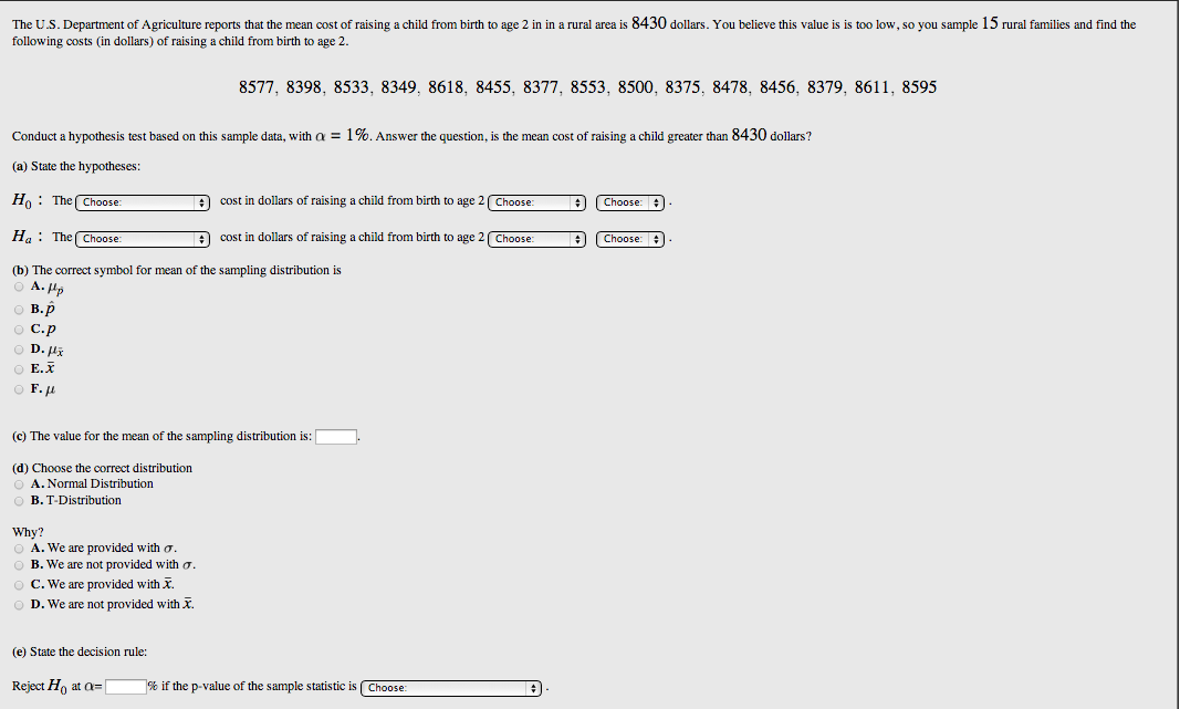 Description: A WeBWorK problem that asks students to conduct a hypothesis test with a raw data set and unknown population standard deviation. The p-value approach is used. The population mean and data set are randomly generated so each student has a unique problem.