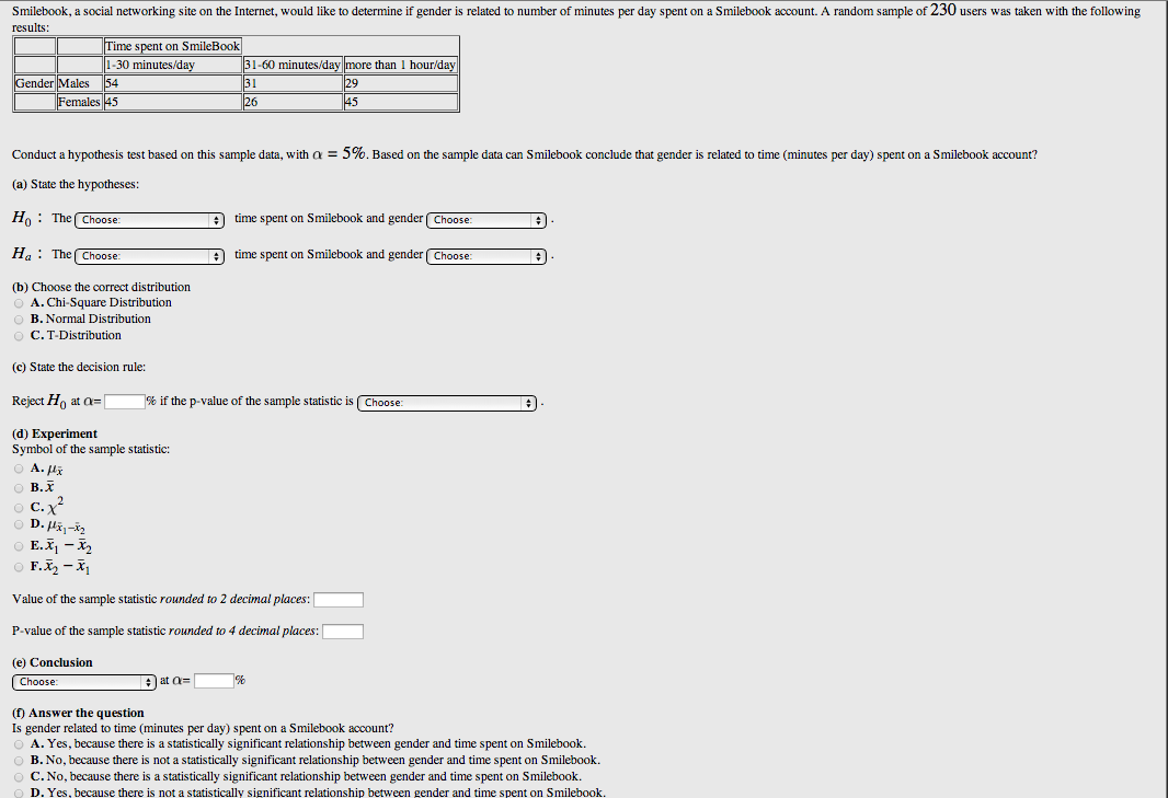 Description: A WeBWorK problem that asks students to conduct a chi square hypothesis test for independence. The p-value approach is used. The observed frequencies and sample size are randomly generated so each student has a unique problem.